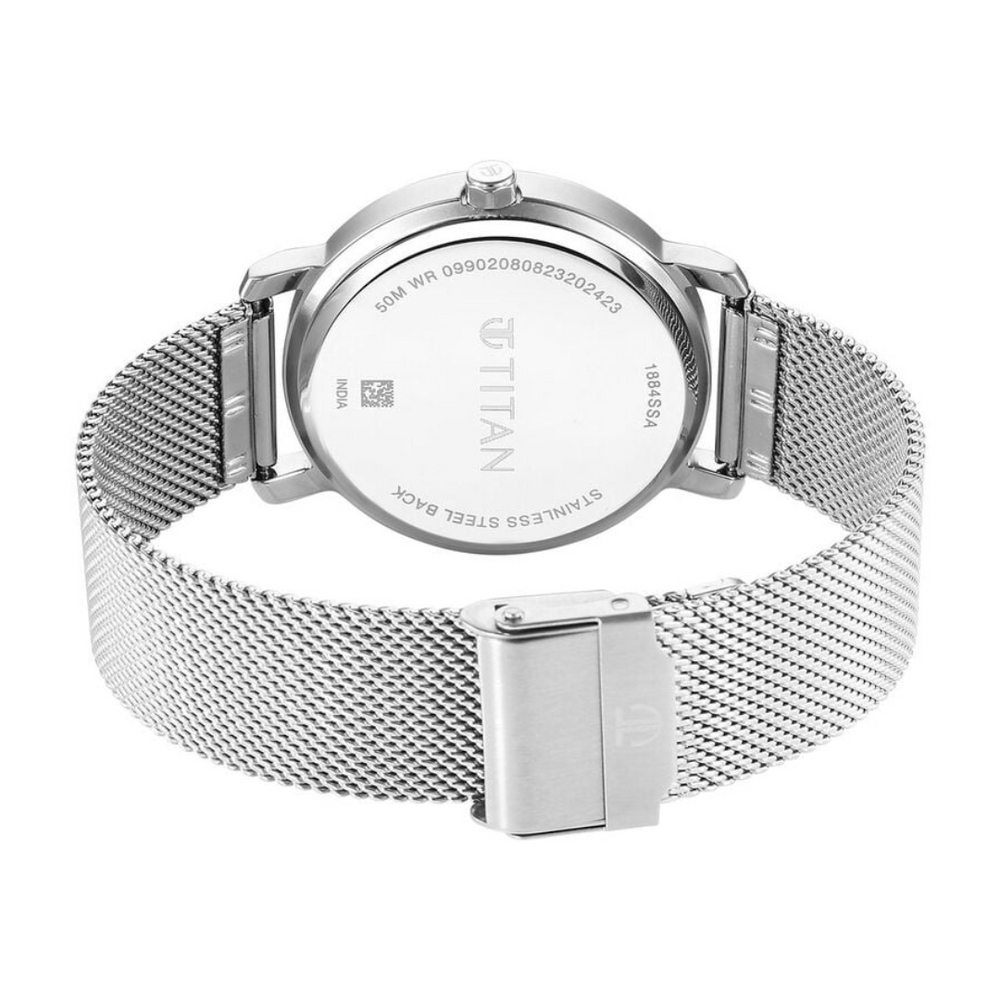 Titan Workwear Quartz Analog Silver Dial Stainless Steel Strap Watch for Men 1884SM01