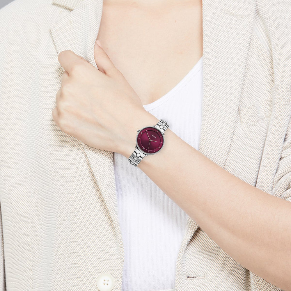 Add timeless elegance to your look with this classic analog watch. Featuring a round dial accented with stone and stick hour markers, it combines subtle sparkle with refined style. The stainless steel bracelet strap with a jewellery clasp ensures a secure, polished fit. With 50m water resistance, it balances sophistication with everyday practicality