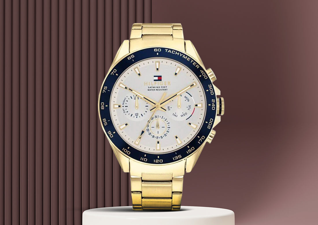 Get a smart look by sporting this women's analog from Tommy Hilfiger. Its round-shaped pink dial is protected in a case of 40 mm diameter. The genuine leather strap of this watch exudes a pink hue for an eye-catching look. Its buckle clasp ensures a secured grip around the wrist. The inclusion of plain 2-hand quartz movement adds to its features.