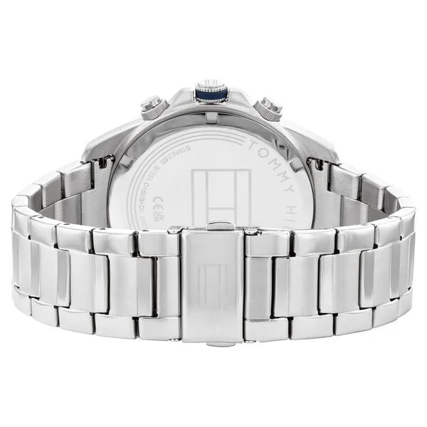 Designed to suit the preference of urban men, this analog watch from TOMMY HILFIGER is sure to make a style statement. The blue round dial is protected by a mineral glass. The stainless steel strap comes in a silver hue that further elevates the look of the timekeeper. Besides, it is completed with a fold-over push button clasp with safety clasp to ensure a secure fit on the wrist.