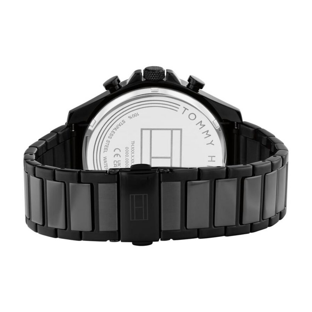 Impress all those in your vicinity with this men's analog watch from Tommy Hilfiger. Encased in a 46 mm case, the black round-shaped dial is attractive and features multifunction functionality for time adjustment. The watch works on a quartz multifunction movement. The stainless steel bracelet comes in a black hue that further elevates the look of the watch. Besides, it is water resistant up to 50 m m and is completed with a push button clasp to ensure a secure fit on the wrist.