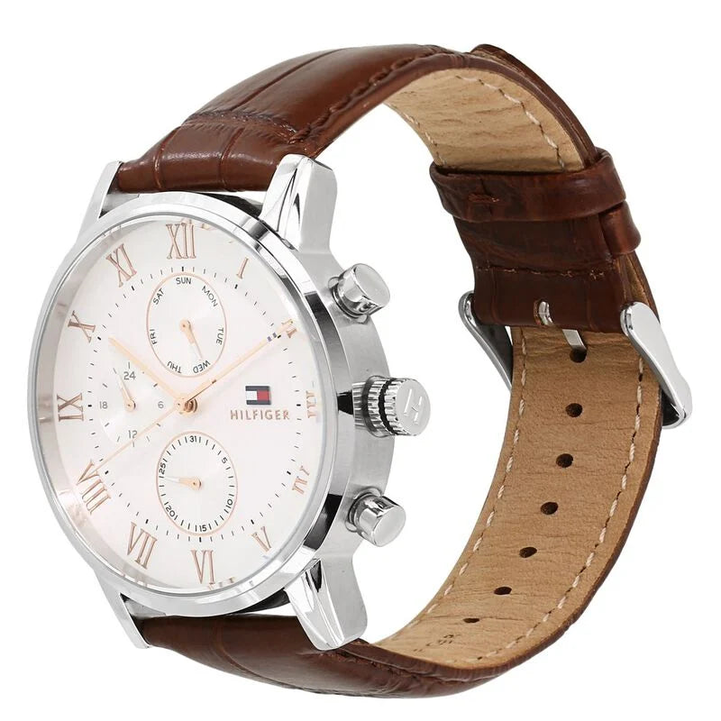 Tommy Hilfiger Quartz Multifunction Silver Dial Leather Strap Watch for Men NETH1791400