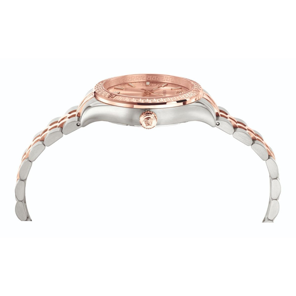 Hellenyium is for the Versace woman who wants to feel elegant and timeless chic. Its look recalls the iconic symbols of the brand such as the Greca engraved on the top ring and the medusa 2D at 12th-hour. The strap proposal is sporty urban while the band confers a look for every day and evening occasion.
