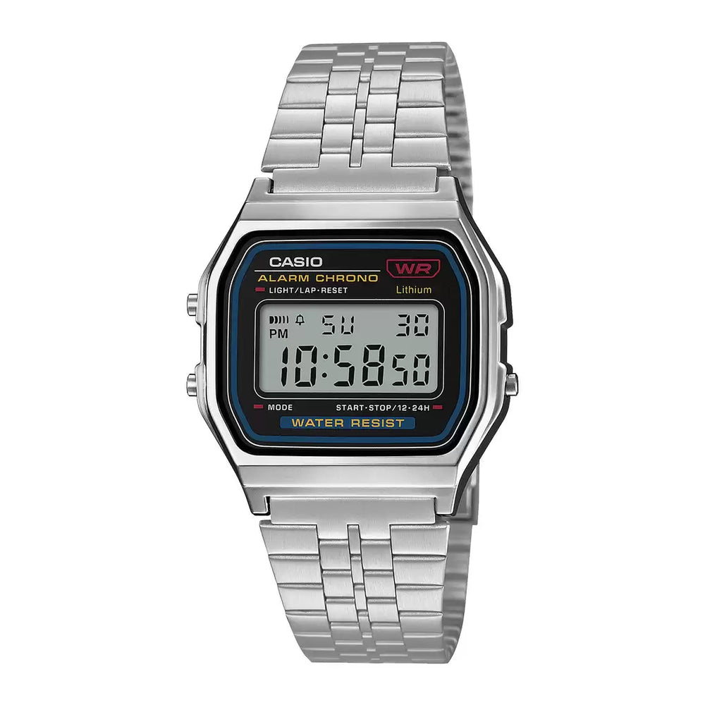 The Casio Vintage Collection A159WA-N1DF - D338 is a classic unisex digital watch that embodies retro charm and reliable performance. With a stainless steel band,LED light, and daily alarm, stopwatch functionality, this watch offers a timeless design suited for everyday use and vintage style enthusiasts.