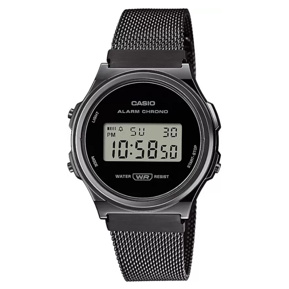 Go vintage in all black with a gunmetal case and black ion-plated mesh band for the essence of monochromatic minimalism in a soft, round look. The mesh band and black ion plating elevates and refines this watch, inviting you to make it your favorite accessory. More than just a fashion statement, this watch delivers practical functions such as stopwatch and alarm, as well as water resistance for daily use to free you from worry, even on rainy days.