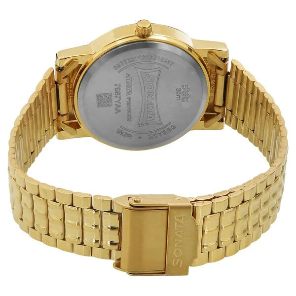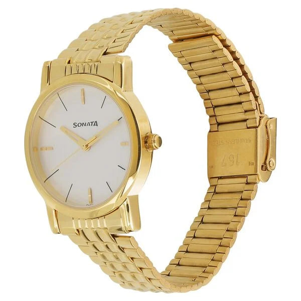 White Dial Golden Metal Strap Watch - NP7987YM05W