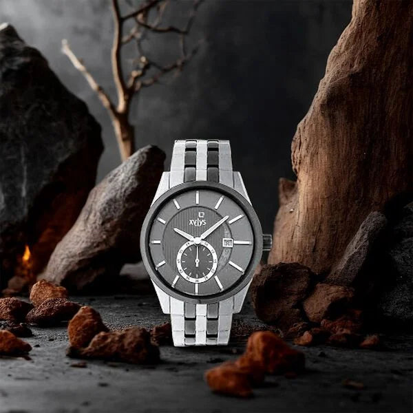Xylys Quartz Analog with Date Grey Round Dial Two Toned Stainless Steel Strap Watch For Men 40024km02e