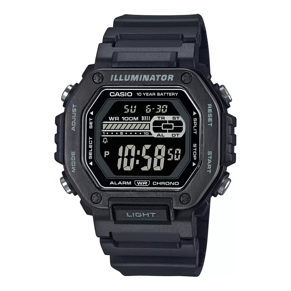 Delivering 100-meter water resistance and a 10-year battery, these digital watches feature a metal bezel in an angular eye-catching design. The oversized, easy-to-read, easy-to-use watch face is framed in the solid bold look of stainless steel. The front button at the 6 o’clock position makes it easy to access the LED light. Packed with more handy functions that include stopwatch, countdown timer, alarm, and dual time display.