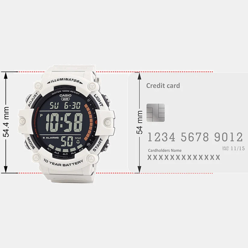 The Casio YOUTH AE-1500WH-8B2VDF is a durable and reliable digital watch designed for everyday wear. Featuring a bold and sporty design, this watch includes dual time, a 1/100-second stopwatch, LED backlight, and an impressive 10-year battery life. With 100M water resistance, a full auto-calendar, and five multi-function alarms, it's the perfect blend of functionality and style.