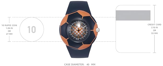 This football-shaped analog watch has a multicoloured printed dial housed within a stainless steel case. It displays time in a captivating way. It has a black strap that can be secured with a buckle clasp. Bring alive the joy of sports with this watch.