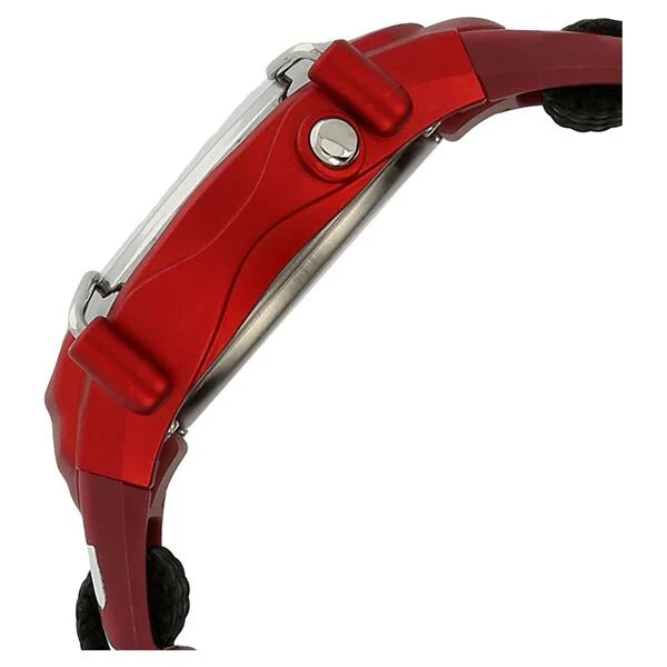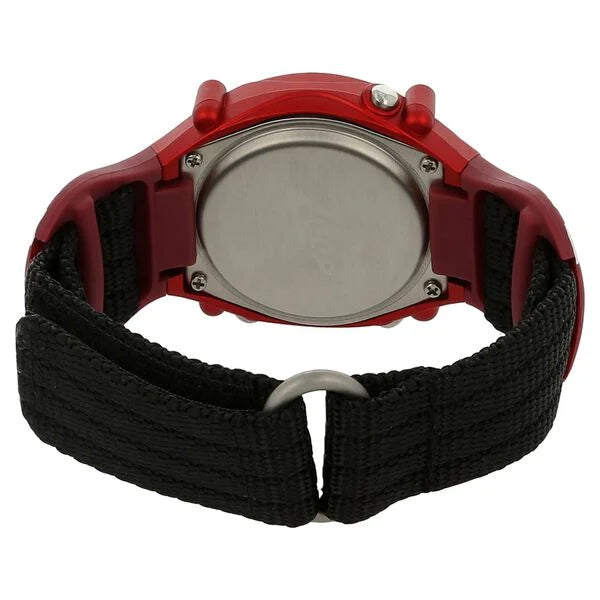 This zoop watch uses the red colour to the fullest. The dial comes in grey colour and has a red colour case which is vibrant and youthful. The two silver colour rod shaped design over the dial gives the watch a sturdy look. The watch comes with a black colour canvas strap and 5 ATM water resistance.