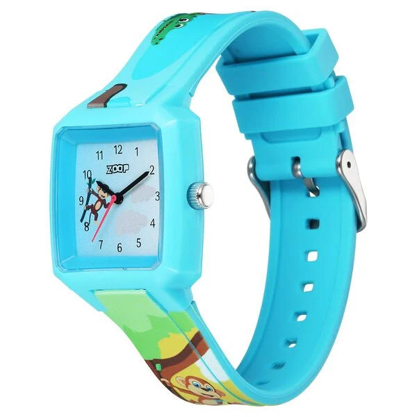 Give your wrist the perfect blend of style and comfort by wearing this unisex's analog watch from the Forest Story collection by Zoop. Functional on a quartz movement and protected by a , the blue square dial is housed in a 39 mm case. It displays plain three hands, DETAILS and a crown for time adjustment. The silicon strap comes in a blue hue that further elevates the look of the watch. Besides, it is completed with a buckle clasp to ensure a secure fit on the wrist.