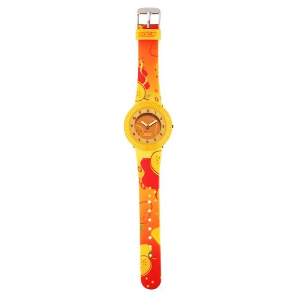 Make a distinct style statement wearing this unisex's analog watch from the Fruit Story collection by Zoop. Enclosed in a 38.3 mm case, the orange round dial is secured by a . It displays plain two hands, DETAILS and a crown for time adjustment. The pu strap vaunts a orange hue that enhances the look of the watch. Besides, it is finished with a buckle clasp that provides a secure fit on the wrist.