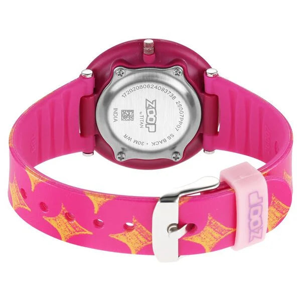 Zoop By Titan Fruit Story Quartz Analog Pink Dial Plastic Strap Watch For Kids 26007pp07w
