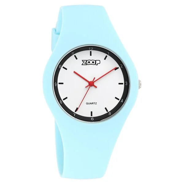 Elevate your children's admiration by donning this watch from the Pop Integrated collection by Zoop. Encased in the white round dial, it features plain 3-hand functionality and quartz movement. The silicone strap comes in a blue hue that further elevates the look of the watch. Besides, it is water resistant up to 30 m and is completed with a buckle to ensure a secure fit on the wrist.