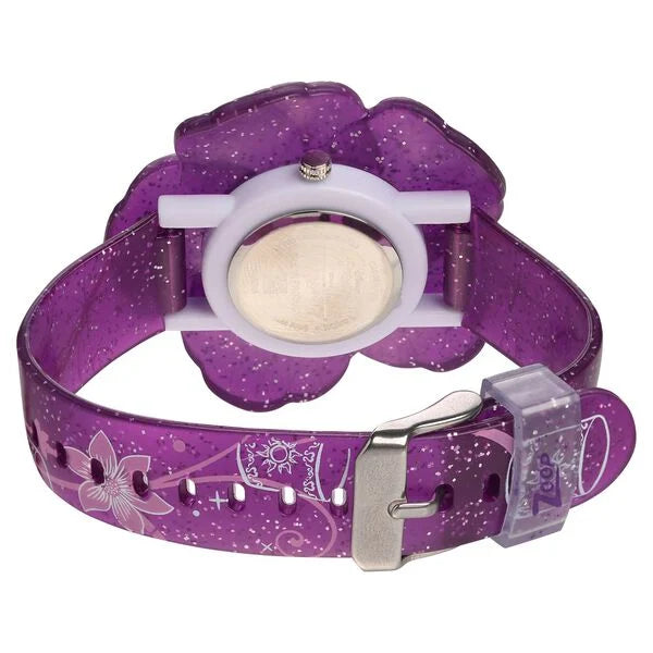 Look attractive by wearing this girl's analog watch from Zoop. Its round-shaped purple dial is protected in a case of 36 mm diameter. The PU strap of this watch exudes a purple hue for an eye-catching look. Its plain 2-hand quartz movement keeps you on time. Its buckle clasp ensures a secured grip around the wrist.