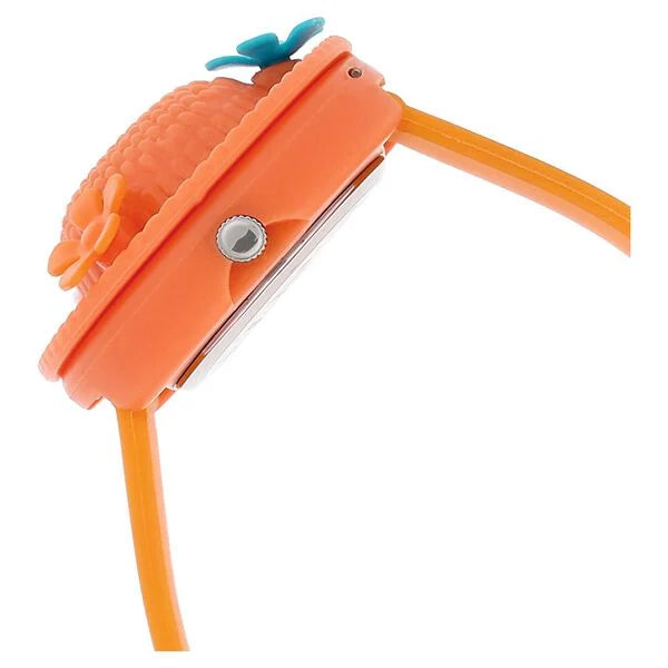 This analog watch for girls displays plain two hands on a multicoloured, round-shaped dial with flower design. The round, orange-coloured case and has a lid in the form of a beautiful, orange hat with orange and white flowers, Arabic numerals at intervals of five minutes, quartz movement, a stainless steel back case and a crown to adjust the time. Made of synthetic material, the strap is orange in colour and has a comfortable buckle clasp closure. The unique feature of this watch is the small white flower in the middle and it is user-friendly. The watch comes with a 12 month international warranty and its water-resistant depth is upto 3 ATM.
