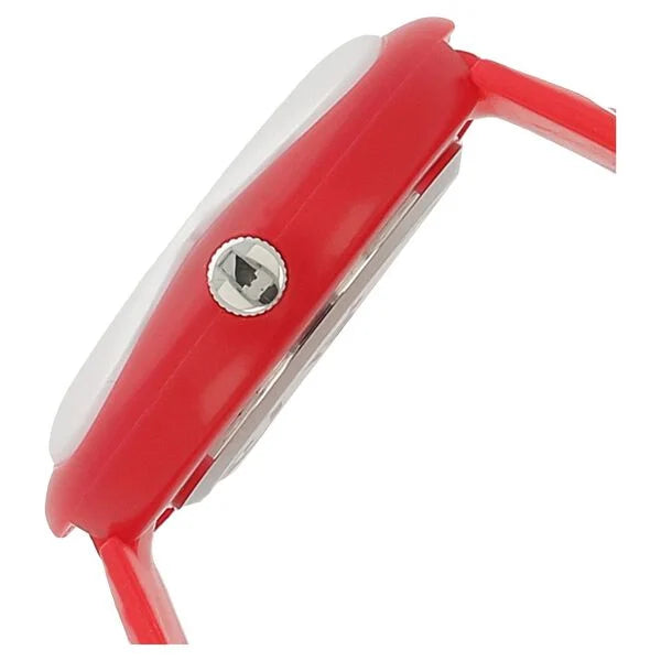 This analog Kids watch for kids has plain two hands on a white round shaped dial. The case is plain and pink in colour with the dial having Arabic numerals at intervals of 5 minutes quartz movement a back casing that is made of stainless steel and a crown to adjust the time. Made of plastic the strap is multicoloured and has a comfortable buckle clasp closure. The watch comes with a 12 month international warranty and its water resistant depth is upto 3 ATM. The unique feature of this watch is the small pink flower in the middle of the dial.