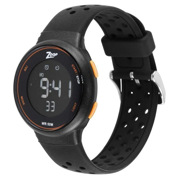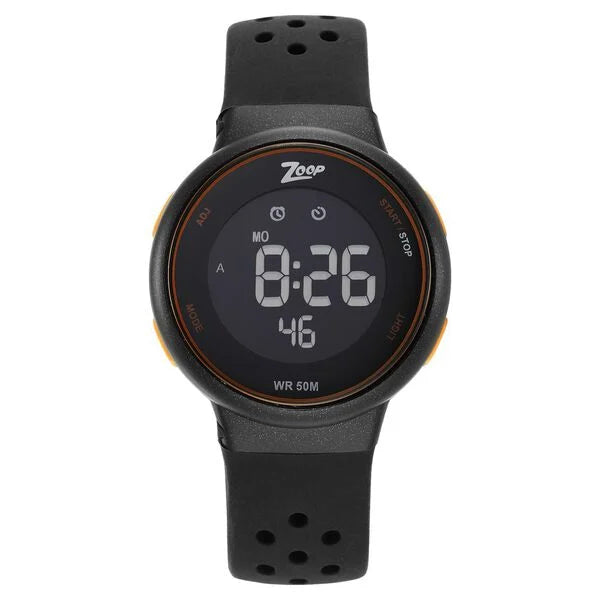 Zoop Digital Round Dial Black Silicone Strap Watch For Kids 16021pp01