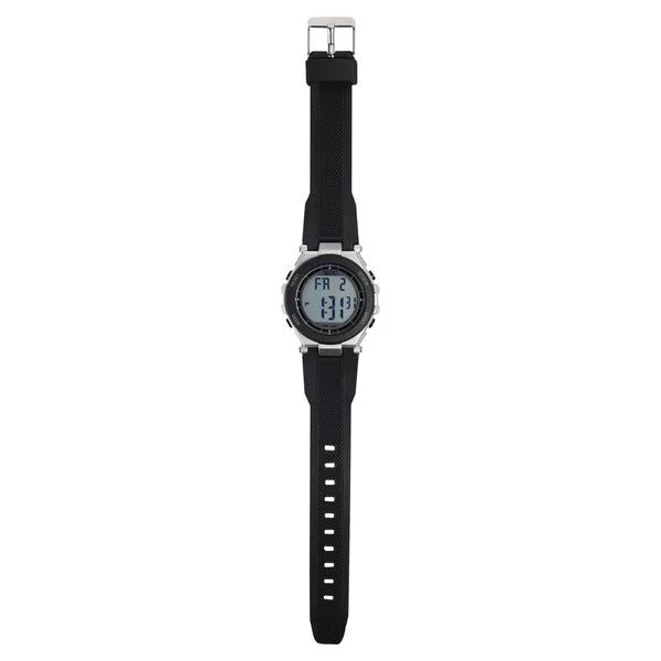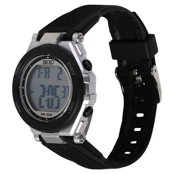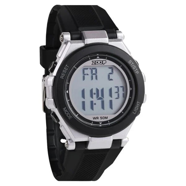 Sleek and bold digital watch with dual time chronograph, countdown timer, alarm & chime, backlight. A perfect companion to student's daily life