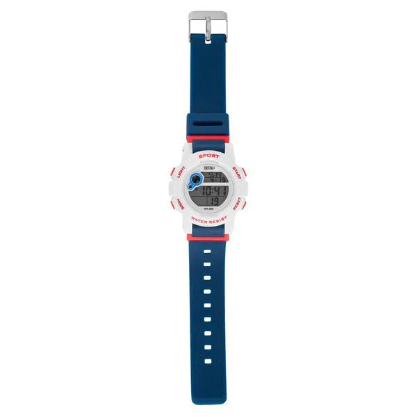 A unique digital watch with matte finish case, sporty digital dial and soft PU strap. Features include: 12/24 Hour format, Alarm, Day, date, Chronograph, Backlight.