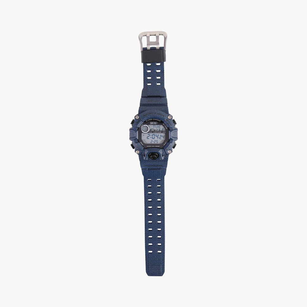 This digital watch for boys has a contemporary dial, chronograph settings, stopwatch and alarm functions. Made of ABS case & PU Strap, this watch has a unique transparent texture in multicolor, giving it a modern tech inspired look